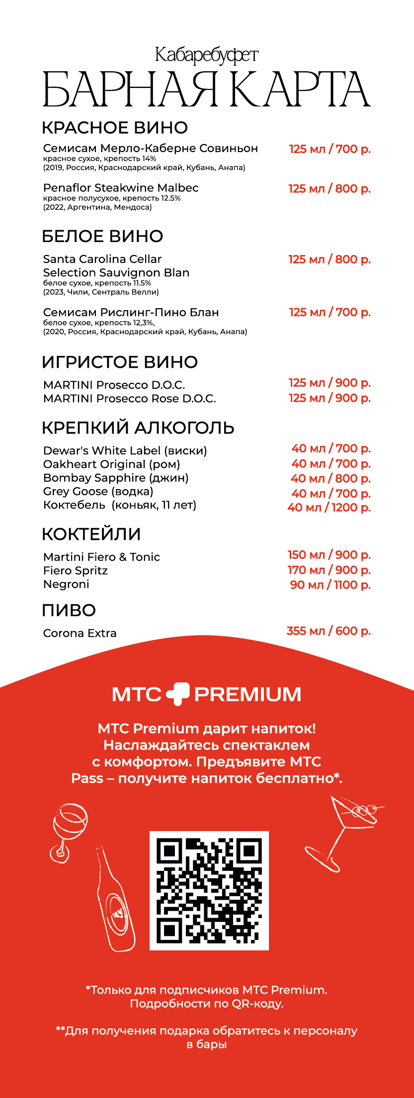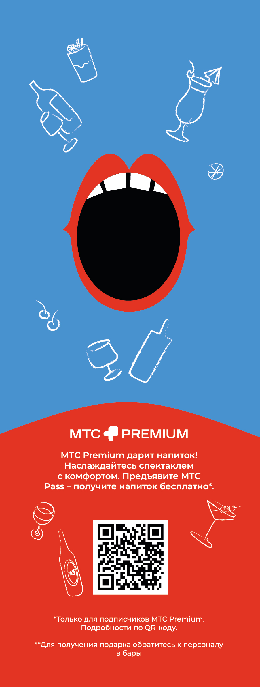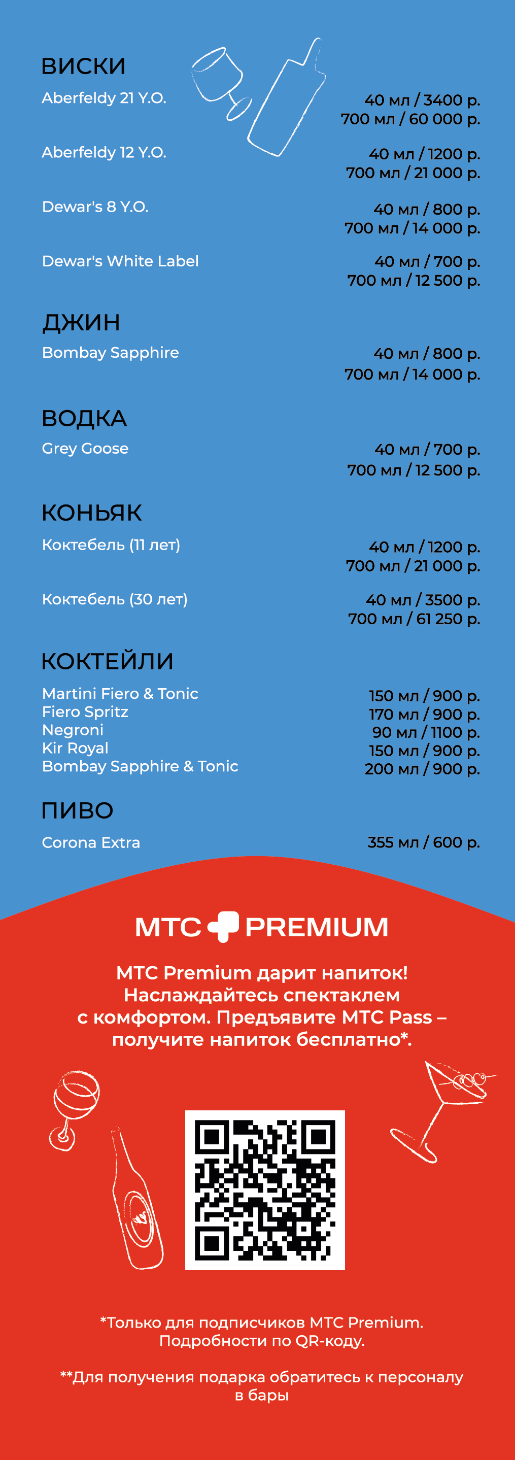 В барах фойе легко поднять настроение в предвкушении шоу, заказав напитки: выбирайте привычную классику барных карт или необычные версии знакомых коктейлей. Для заказа также доступны кофе, чай, прохладительные напитки и домашние лимонады в нескольких ярких вкусах!